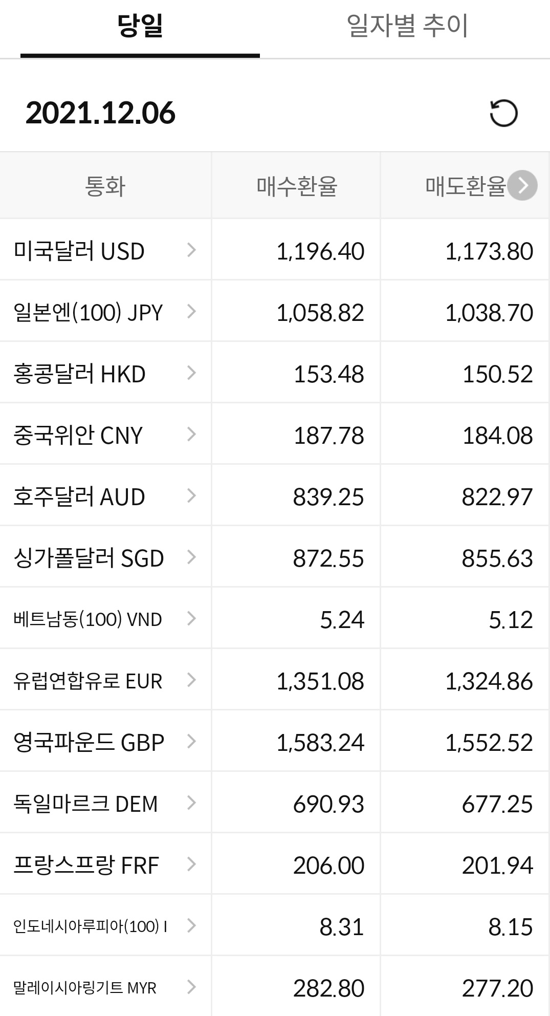 21년12월6일 기준 달러를 살때는 1달러에 1196원에 살 수있고, 1달러를 팔때에는 1173원에 팔 수 있습니다.