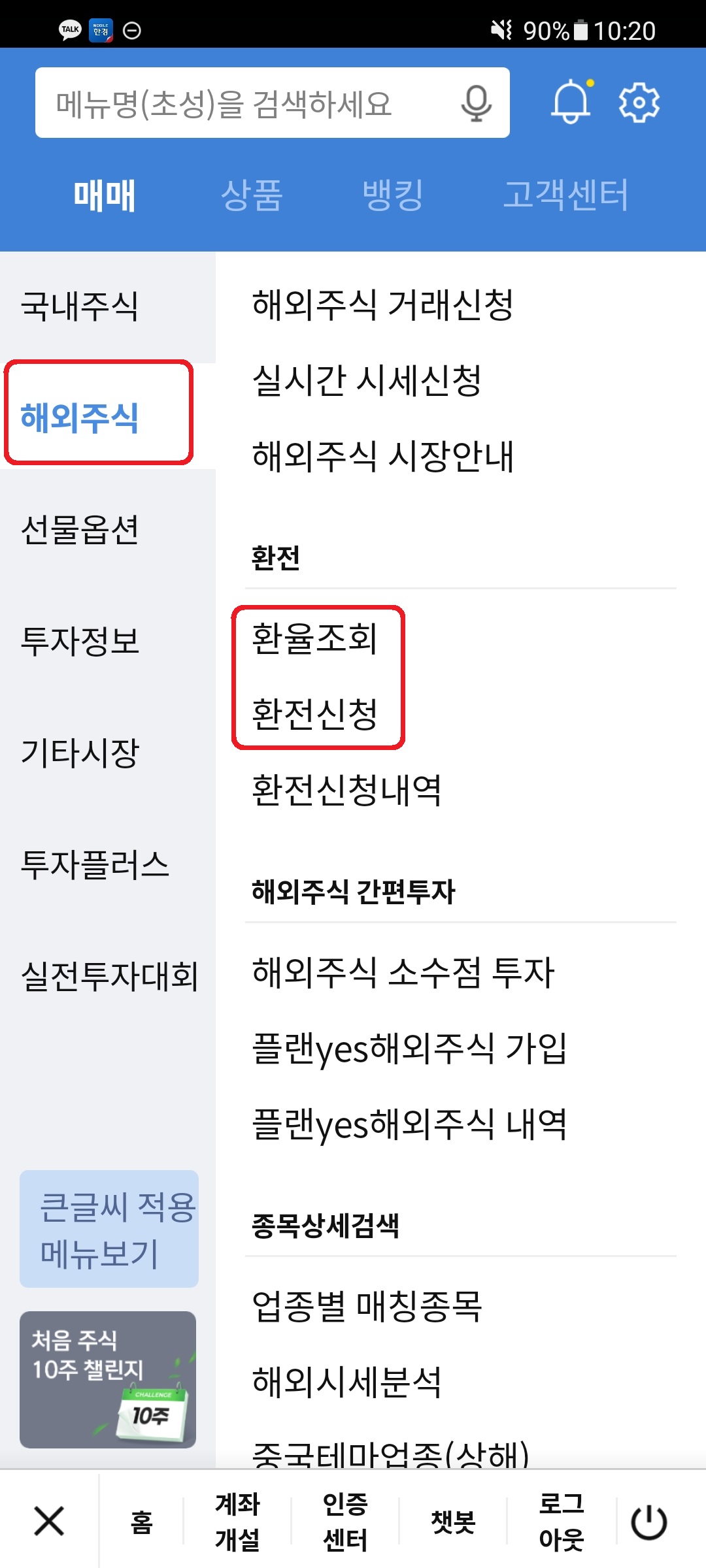 - 원화 > 달러 환전 (증권사 어플에서 가능)